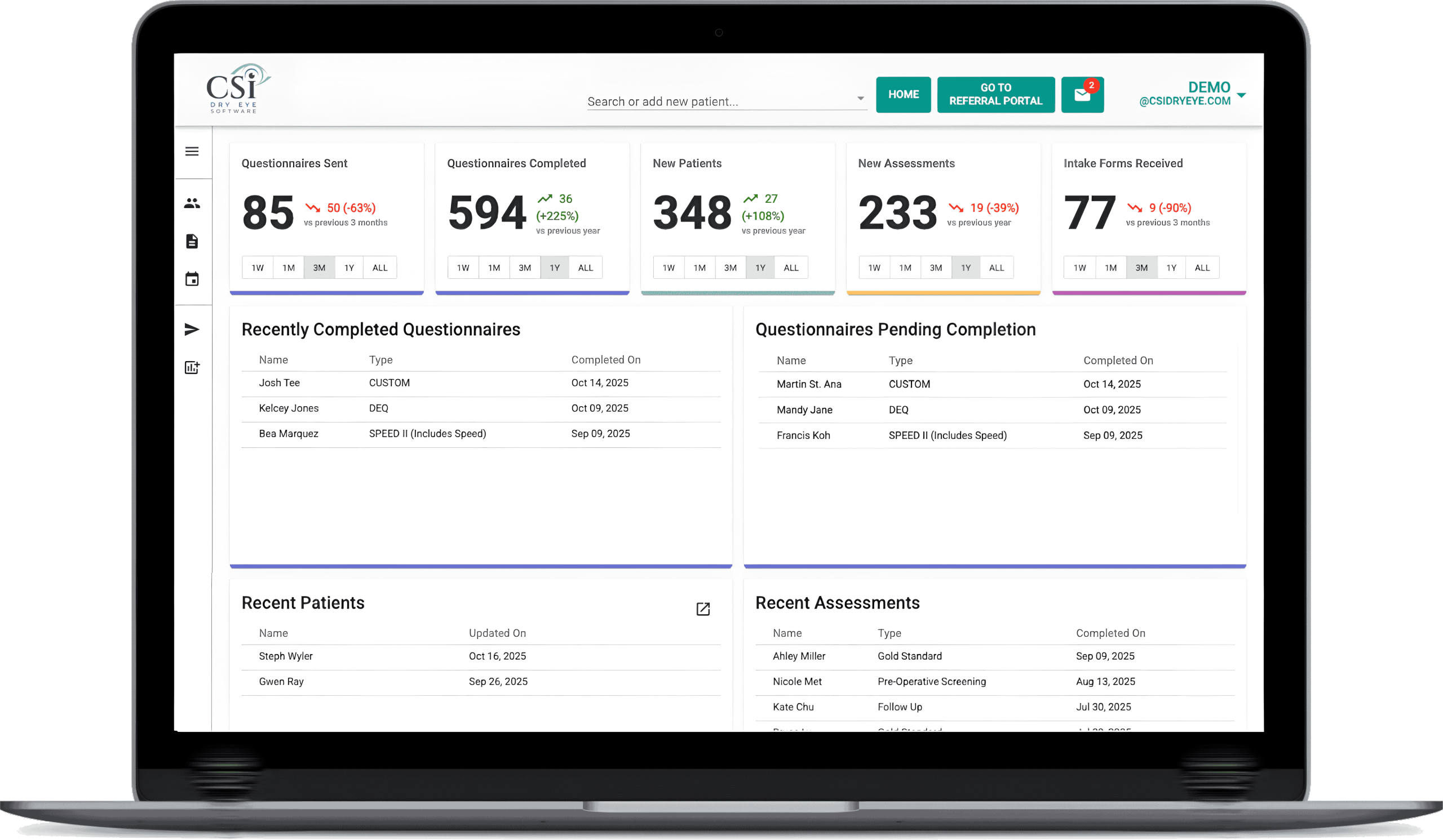 CSI Dry Eye Software delivers intelligent insights to doctors, improving accuracy and streamlining workflow for measurable growth. For patients, it provides the “why” behind their symptoms and supports personalized plans for lasting relief. Trusted by eye care leaders, CSI Dry Eye Software is redefining dry eye assessment and management with smarter, scalable tools for quick, confident care.